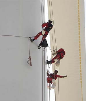 Несмотря на поддержку спецтехники, обычный маляр без большого опыта монтажа на высоте может потерять бдительность. Человеческий фактор никто не отменял. А вот альпинисты на высотных работах таким рискам не подвержены.